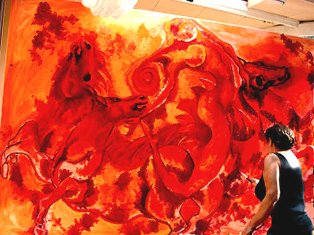 "... die phantastische Welt der Fabulos und Wellenweiber", 180 x 280 cm, Öl auf Leinwand 2006 REVOST-Struktur