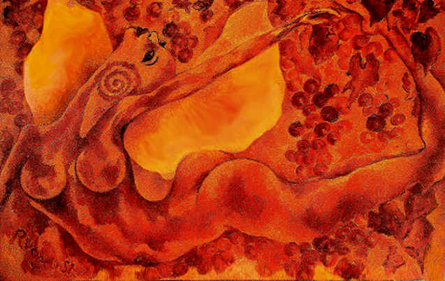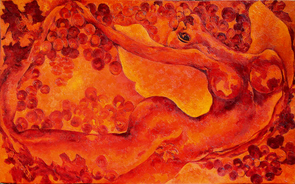 "Wellenweib mit Trauben", Werkverzeichnis 493, 80 x 130 cm, 2008