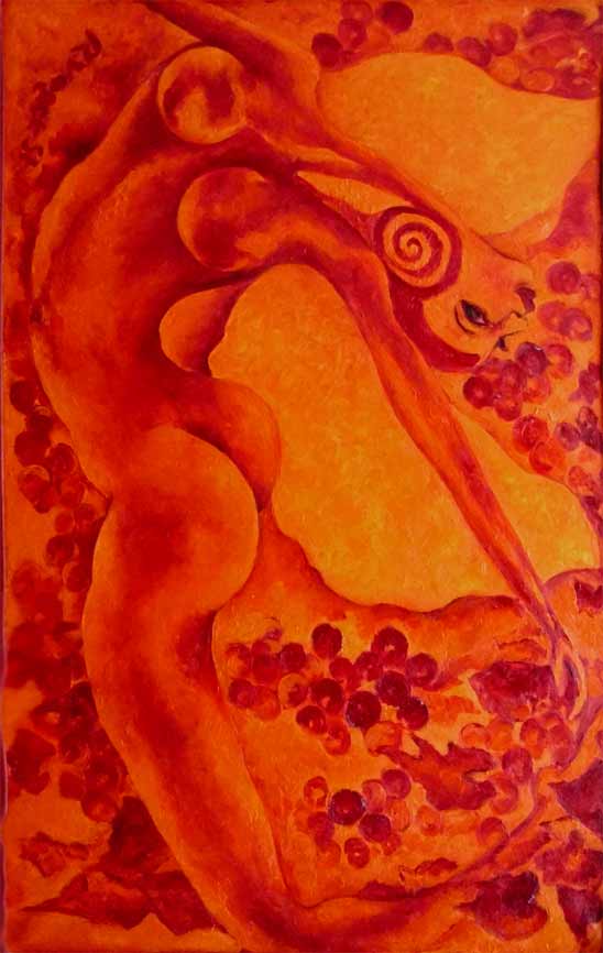 "Wellenweiber... Engel mit süßen Früchten", Werkverzeichnis 495, 130 x 80 cm, 2008 -senkrecht-