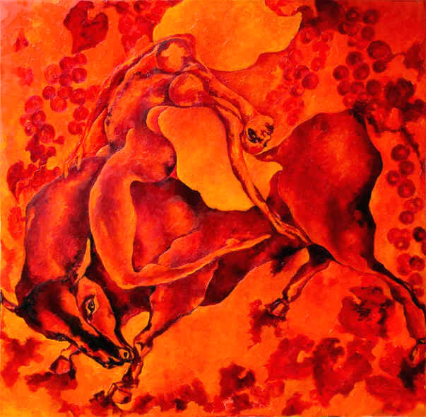 Wellenweiber "Wellenweib mit Stier" 100 x 140 cm, Öl auf Leinwand Werkverzeichnis 473 2006 REVOST-Struktur |