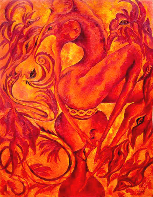 *Wellenweiber* "Dschungelfieber - gefährliche Liebschaften" 150 x 120 cm, Öl auf Leinwand, REVOST-Struktur, Mischtechnik Werkverzeichnis 502 2010