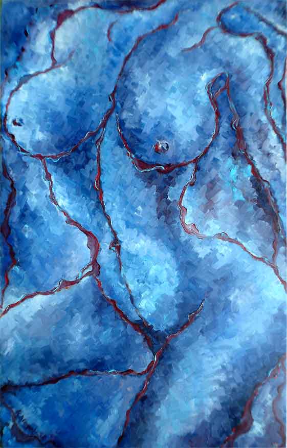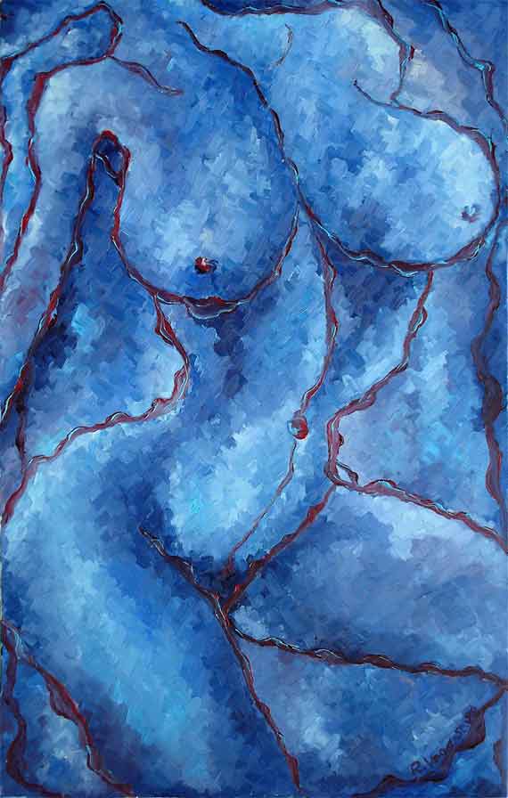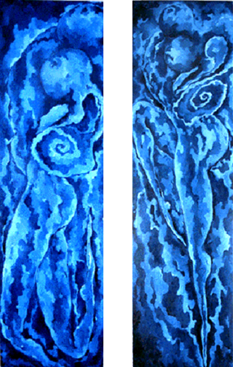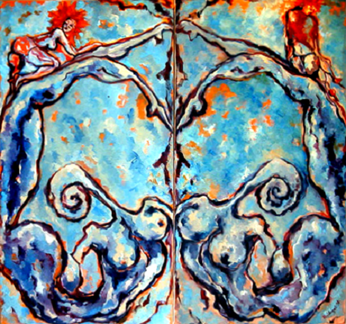 „WELLENWEIBER IX- Twins“ 130 x 80 cm, Öl auf Leinwand, Werkverzeichnis 367 1998 (Revost-Struktur©) |