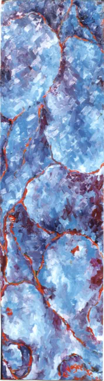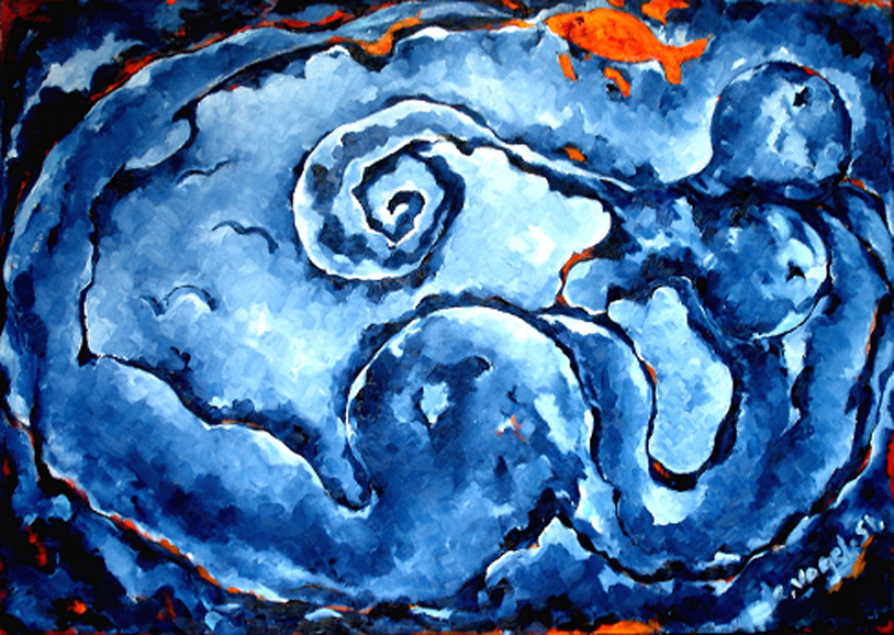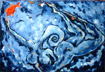 Wellenweib XXVI "wellenweib mit rotem Fisch II" 90 x 130 cm, Öl auf Leinwand, 2004 Werkverzeichnis 447 REVOST-Struktur |